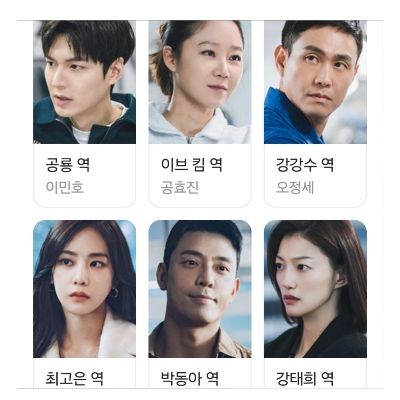 출연진으로는 이민호(공룡 역), 공효진(이브 킴), 오정세, 한지은, 김주헌, 이엘, 이초희, 허남준, 이현균, 박예영, 이초희, 알렉스 하프너, 김응수, 백은혜, 전수경 등이 있어요