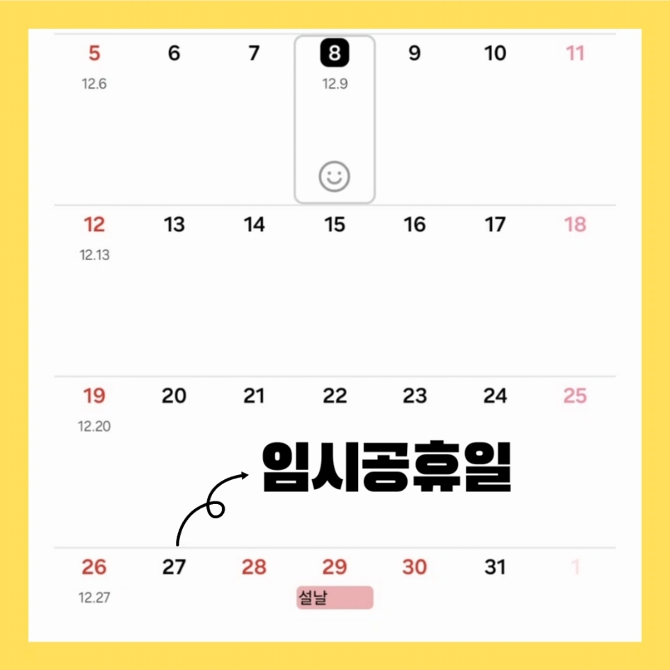 보이는데요 27일 공휴일에 31일 연차까지 내게 되면 9일간 쉴 수도 있게 되었어요